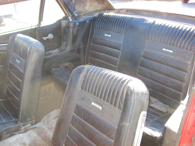 This red beauty looks fairly complete. It has a few minor looking rust spots, but really it just needs some minor repair and a new paint job. The interior and engine also looks to be in good shape. The underside of the car has solid frame rails, but the floor pans may need to be replaced. With a little TLC, and a new paint job you could have yourself a beautiful new classic red Mustang.